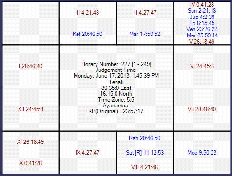 This match is between Australia and Sri Lanka on 17/06/2013 at 12:00 GMT at London. The following is the horary map in favor of Sri Lanka.
