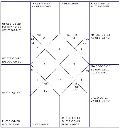 Todays match is between Mumbai Masters (MM) and Awadhe Warriors (AW). The following is the horary map for KP No. 68 in favor of AW.