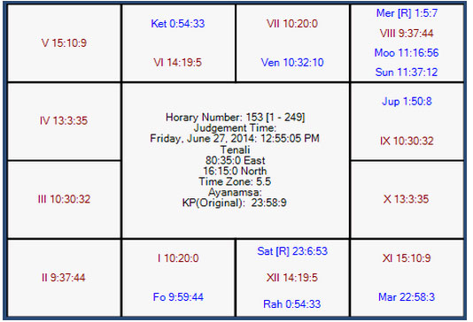 The following is the horary map for the seed number mentioned above. The rules are obvious that the sub-lord of 6th house strongly signifying developing houses like 1, 2, 3, 6, 10 and 11 houses.