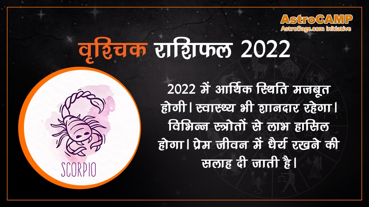 वृश्चिक राशिफल 2022: जानिये कैसा रहेगा वृश्चिक राशि के जातकों के लिए साल 2022। पढ़िए Vrishchik Rashifal 2022 और जानिये क्या कहते हैं आपके सितारे। ...