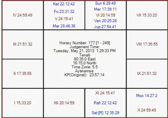 At last we entered into the play-offs for IPL-6. Today this exciting game is between two strong teams CSK and MI. Naturally cricket lovers will be curious to know the outcome of this game. As an ardent believer in astrology I would like to present my prediction using Horary Astrology. Here I would like to disclose that these are only astrological inferences and cannot be taken as granted. Hence readers discretion is important about these predictions.