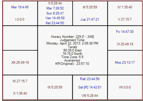 The following is the horary map for KP no 229 in favor of RR.