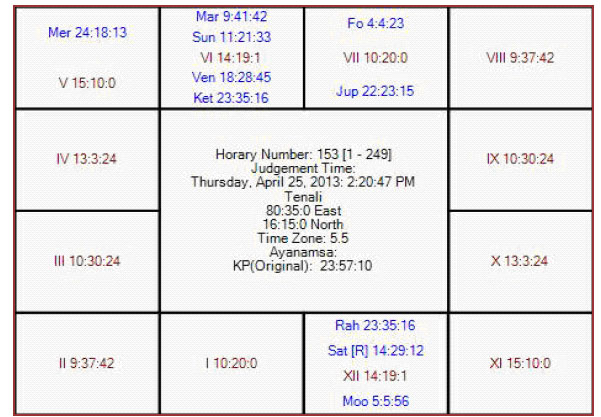 The following is the horary map for KP no 153 in favor of SH.