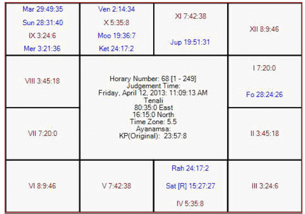 The following is the horary map for KP no 68 in favor of SH.