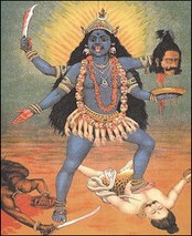 She slaughtered the demons and wore their heads as garland across her neck. In the midst of killing, she lost control and started killing anyone who came in her way. The situation got chaotic and beyond anyone’s control. To stop her from doing this, Lord Shiva came under her feet. At this sight, Goddess Kali’s tongue came out in astonishment. The same repenting moment can be seen in the photographs depicting Goddess Kali with her tongue spilled out.