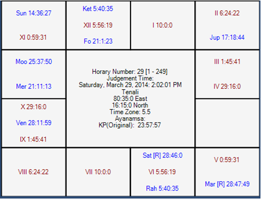 Today, we will have the match between RSA and England. Horary number 29 is taken in favor of RSA. Horoscope is follows: