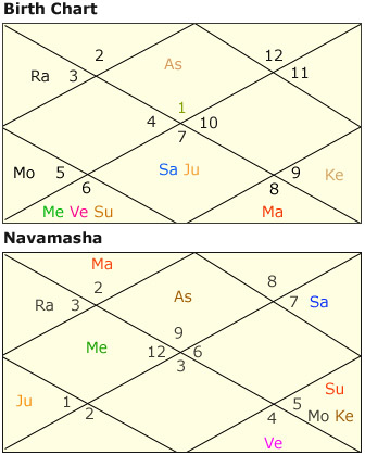 Lets an example to understand the above points, given below is the Janam Kundali and Navmansh Kundali of a native: