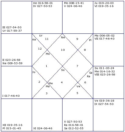 Today is first semi final between Pune Pistons (PP) and Hyderabad Hotshots (HH). The following is the horary map for KP No. 200 in favor of HH.