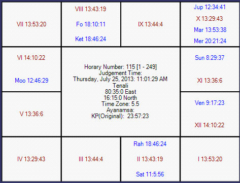 Rule is that the sub lord of the 6th house should be strong connection with 1, 3, 6, 10 and 11 houses for victory otherwise defeat. Ascendant will reflect the favorite team and 7th house the opponent.