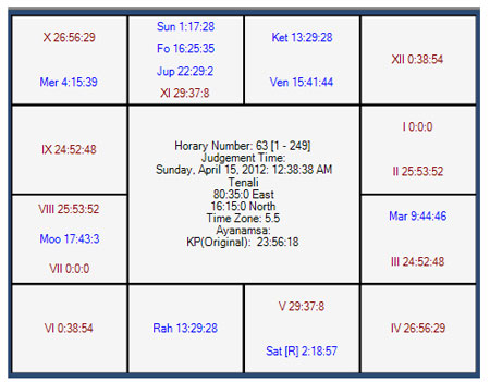 Horary number in favor of KKR was taken as 240 and map of the heavens is as follows: