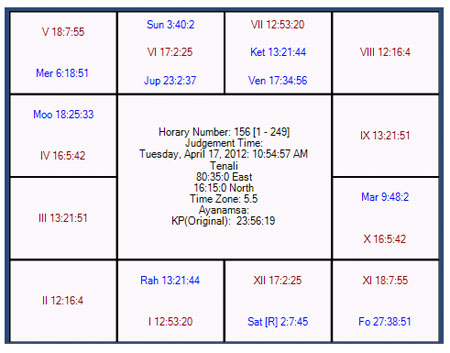 Horary number in favor of RR was taken as 132 and map of the heavens is as follows: