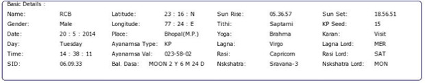 IPL 2014 has begun amidst many controversies. The liking for the game is just awesome and for you, we will try to find the result before the players do it on the field. IPL will continue till 1st of June, 2014, so we have a long series and lot of excitement, sixes and boundaries to watch. These predictions are solely for the purpose of entertainment and astrological research, and should not be used for any other purposes for which we have no responsibility of any kind if you do so.