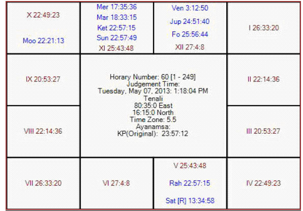 The following is the horary map for KP no 60 in favor of KKR.