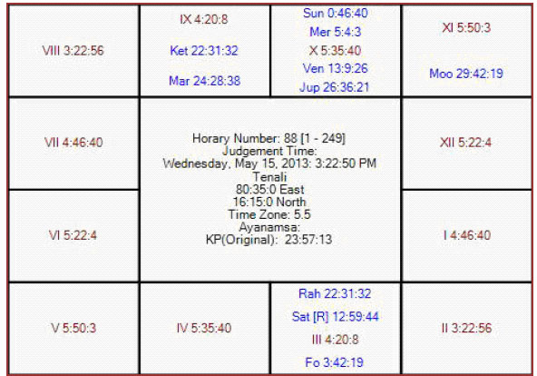 Here 6th sub lord is Mercury; he is in 9th house (very close to 10th house) in Sun star and Saturn sub. Sun is in 9th house and Saturn is in 3rd house in Rahu star. Therefore Mercury is strongly connected with 3rd house at sub level hence will offer positive results for RR.