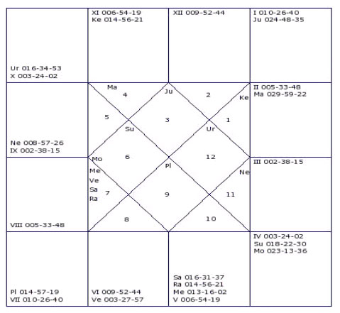 Here the sub lord of 6th house is Venus. She is in 5th house in star and sub of Saturn. Saturn is in 5th house in the star of Rahu. Therefore Venus is connected with 5th house at sub level. This is unfavorable for TT. Further moon will be transiting in the star of Mars. It seems to me stars are in favor of MI. Good luck for both the teams.