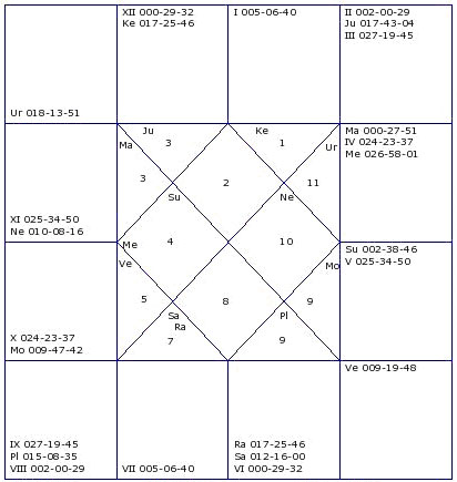 Todays match is between Pune Pistons (PP) and Hyderabad Hot Shots (HHS). The following is the horary map for KP No. 26 in favor of HHS.