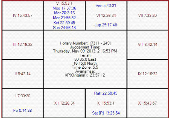 The following is the horary map for KP no 173 in favor of PWI.