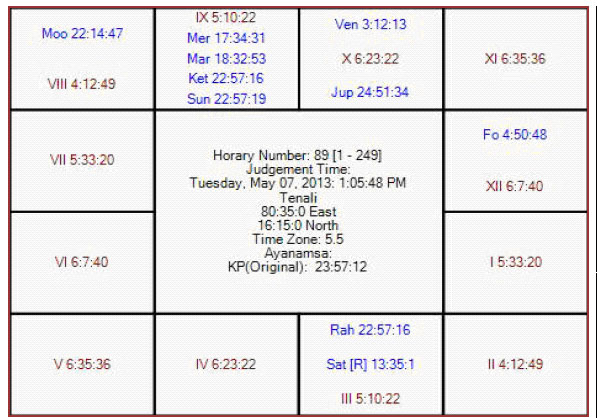 The following is the horary map for KP no 89 in favor of RR.