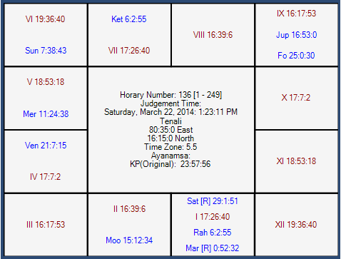 Here, the sub lord of the 6th house is Venus. He is in 4th house posited in Moon star and own sub. Therefore, Venus is connected with Ascendant and tenth house at sub level. It is favorable for RSA. However, the other sub lords are in favor of Sri Lanka! Moon will be in the star and sub of Mercury. It is strongly connected with Venus through star. It seems to me that stars are in favor of RSA. There may be sudden twists towards the end of the game! Good Luck all!!!