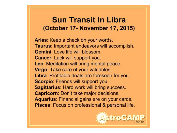 Sun will enter in Libra on October 17 and will stay here till November 17, 2015. Being the King of planets, Sun will produce some really strong impacts on every zodiac sign. Know more about these effects with these exclusive predictions.