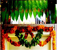 6. Main entrance of the house is decorated with Rangoli, neem & mango leaves.