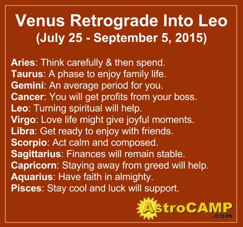 Venus will turn retrograde in Leo on July 25, 2015 and it will remain like this till September 6, 2015. This change will put some definite impacts for your zodiac sign. What these changes could be? Let’s know from astrologer “ Acharya Raman ”.