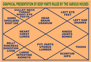 This is a standard horoscope depicting different body parts by the twelve houses.